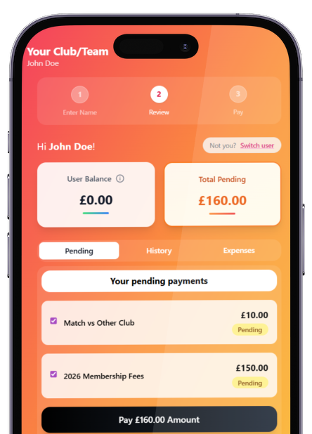 “SquadCollect has completely changed how we manage match fees. It saves me hours every month, keeps everything organised, and makes it a breeze for players to handle expense reports and payments.”